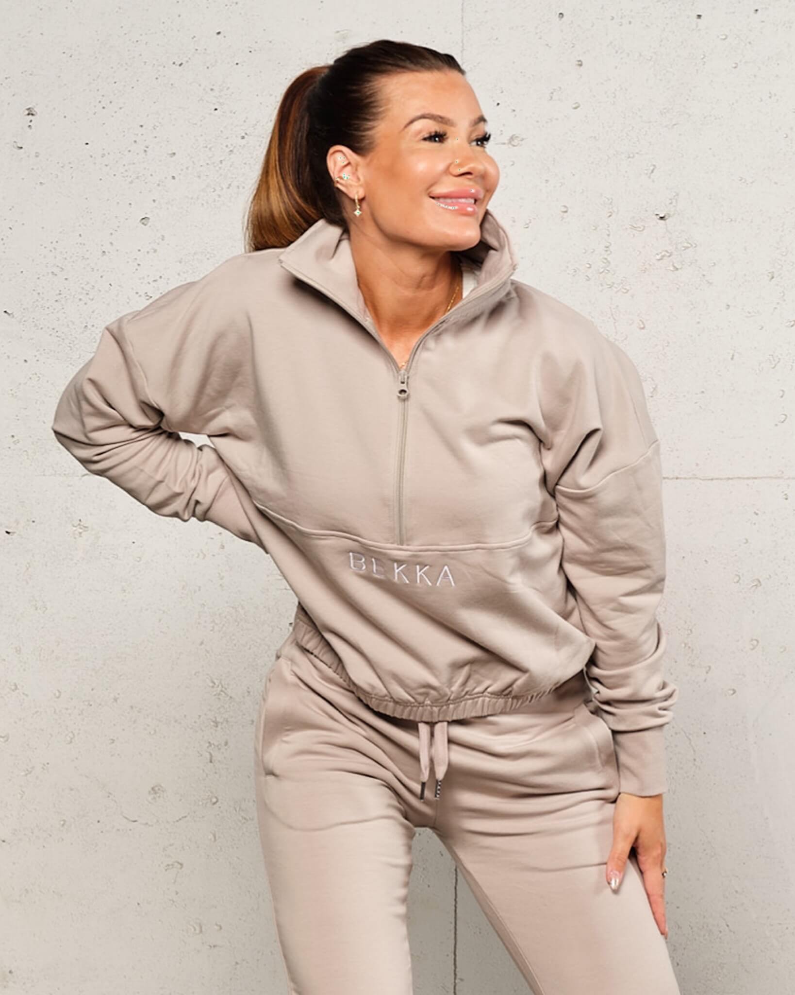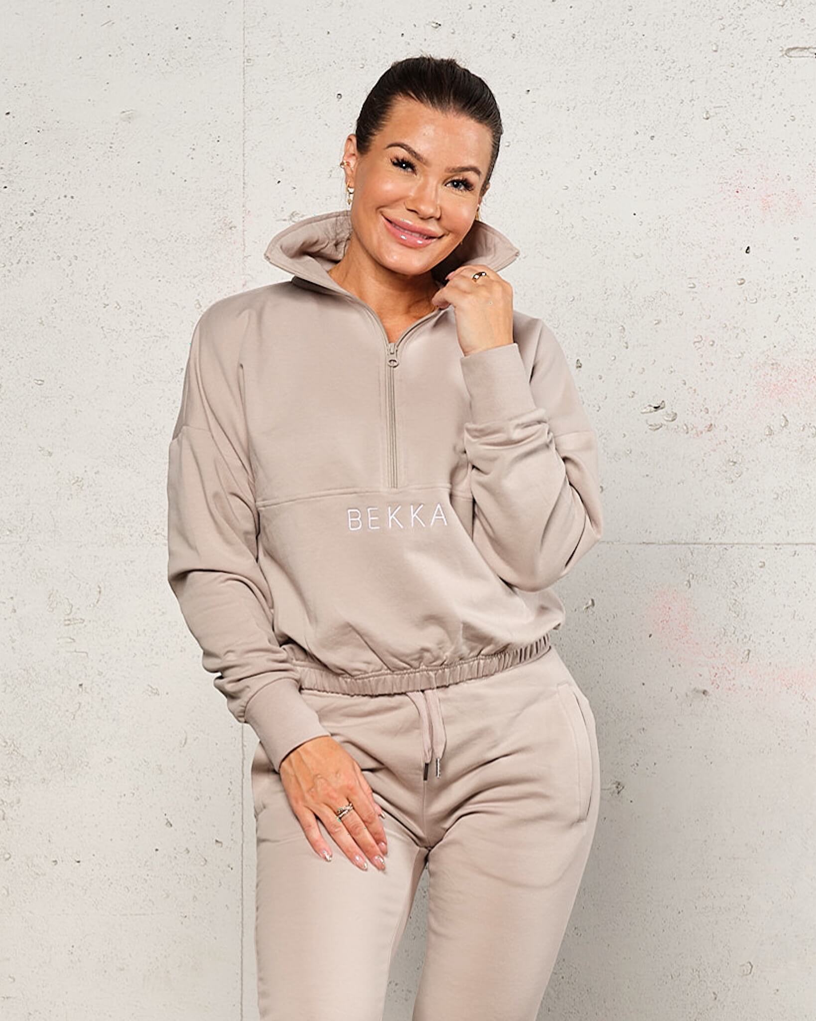 Highschool zip sweater - Burnt sand (hvit logo)