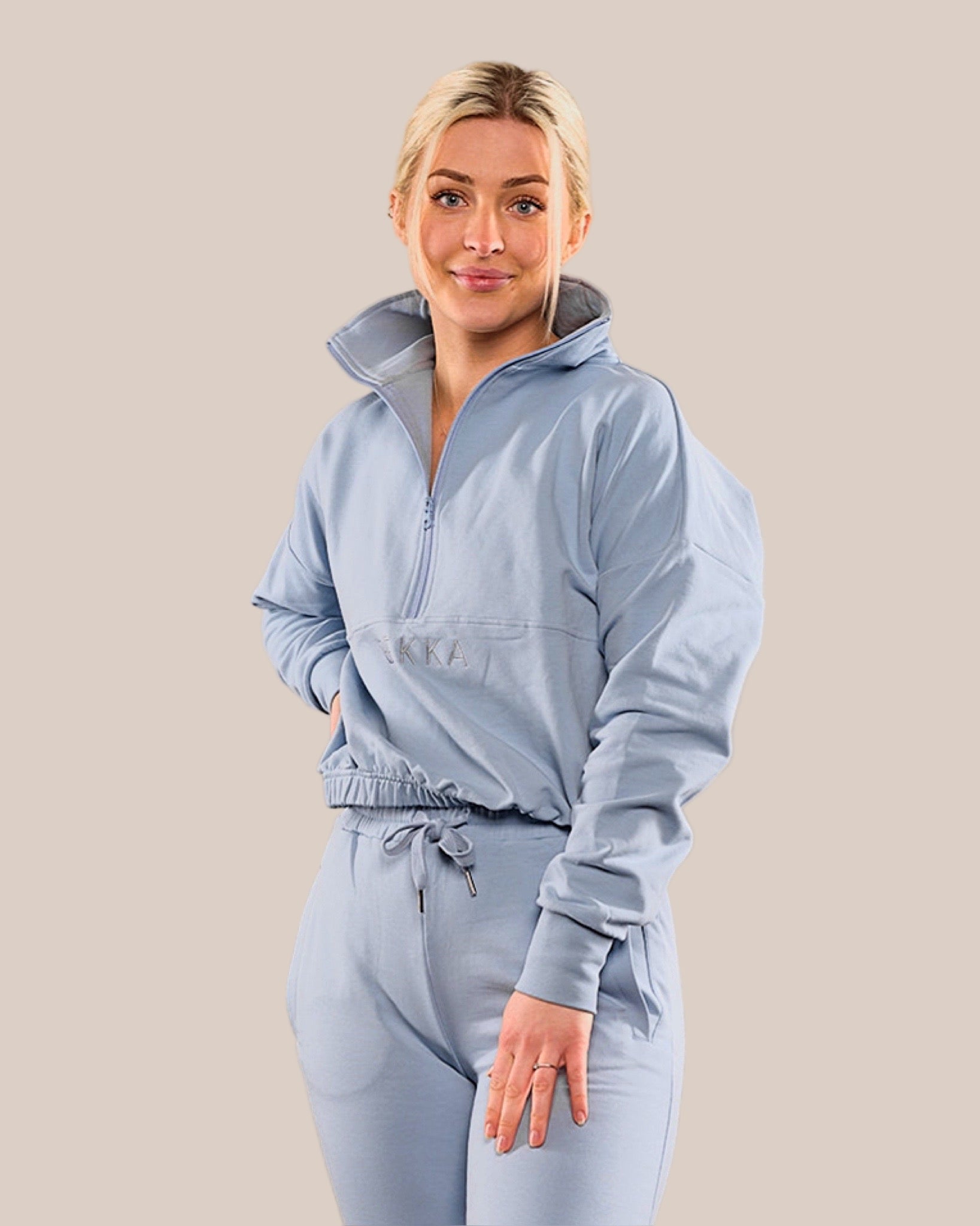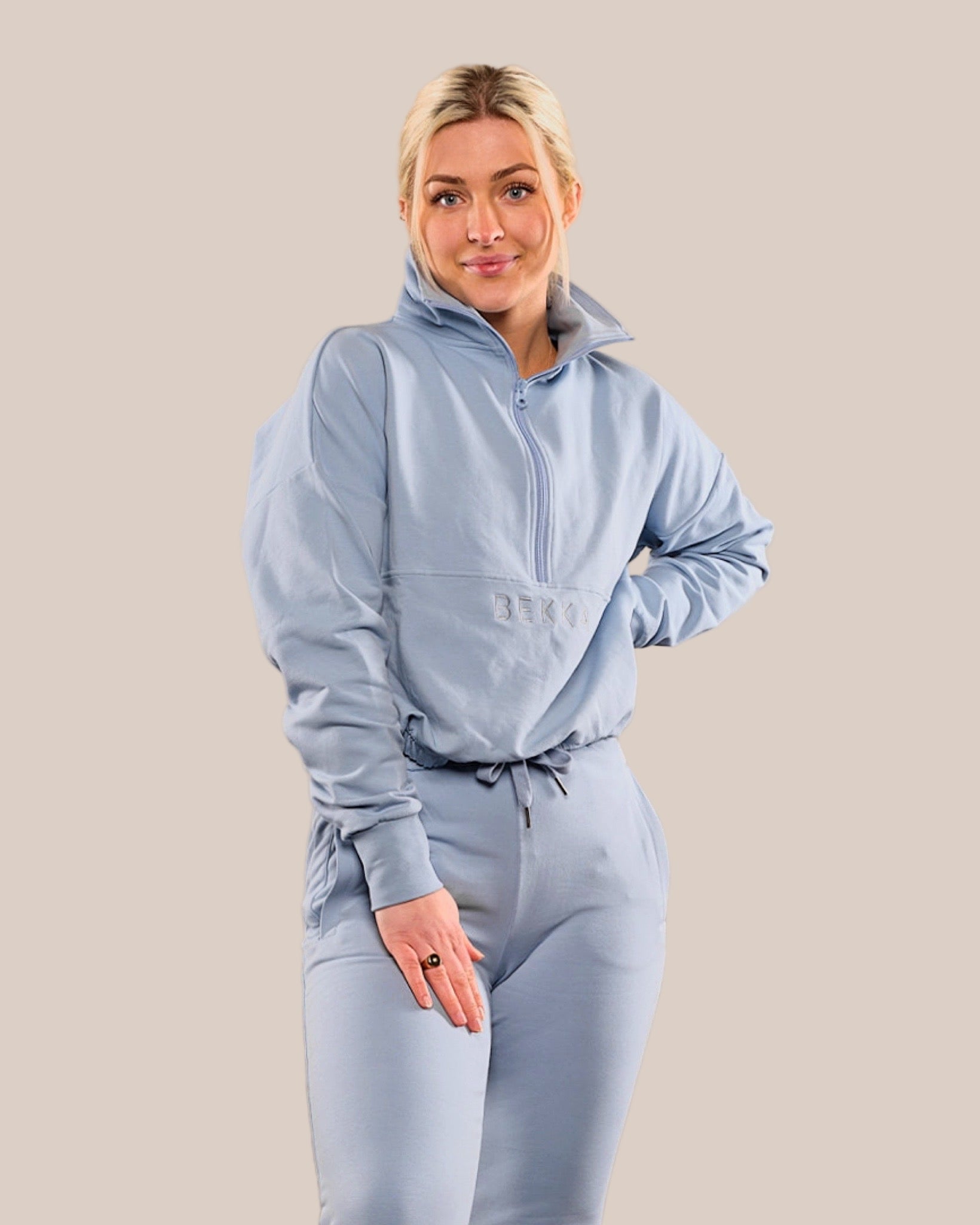 Highschool zip sweater - Dusty blue