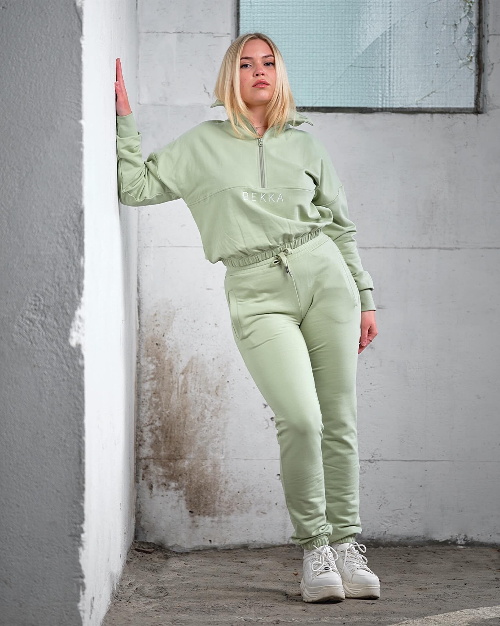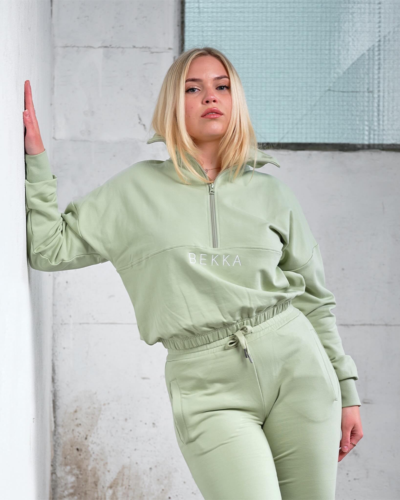 Highschool zip sweater - Light herb