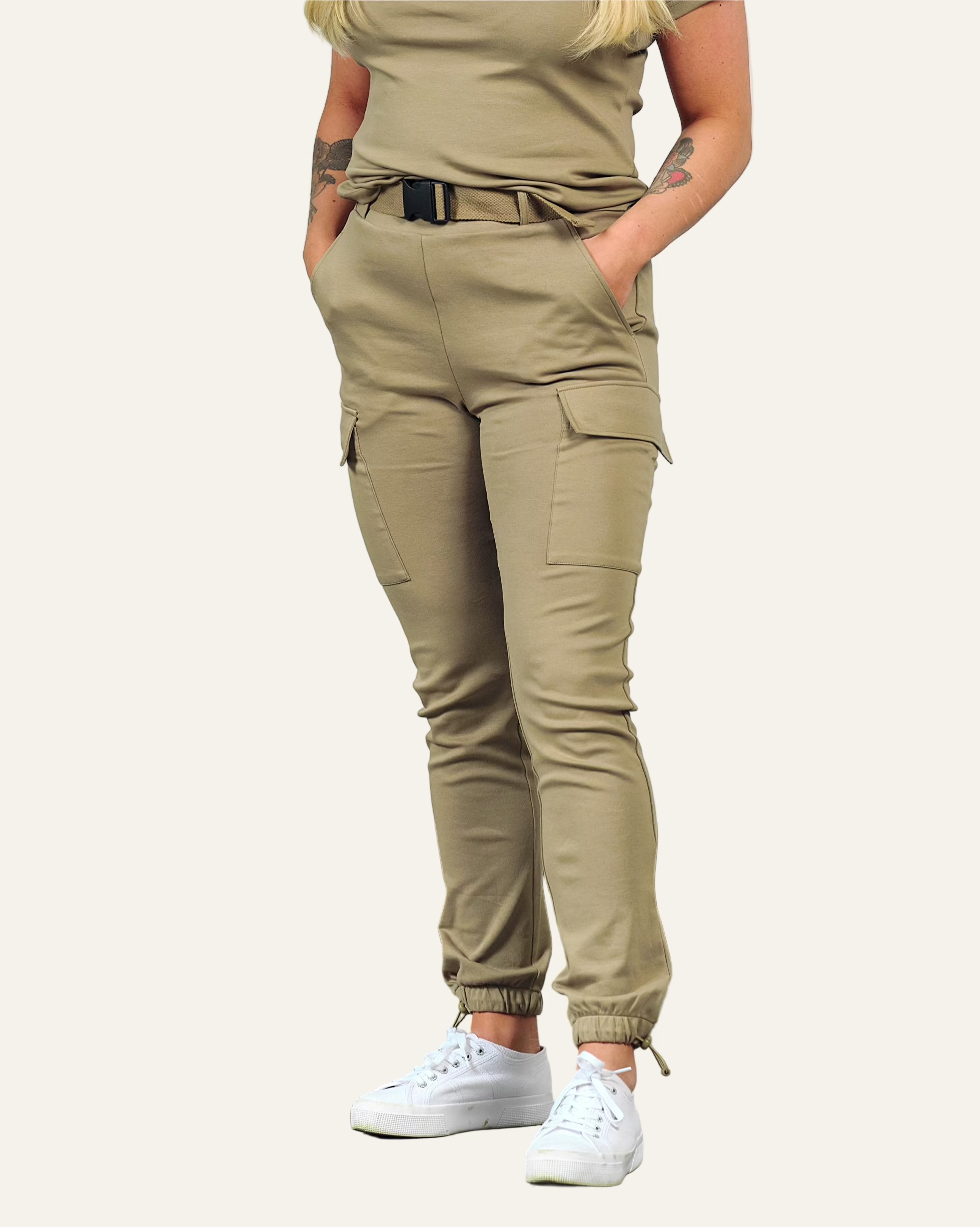 Er en myk og stretchy bukse, med regulerbar midje og ben-åpning. Her snakker vi skikkelig comfy bukse til all slags bruk.